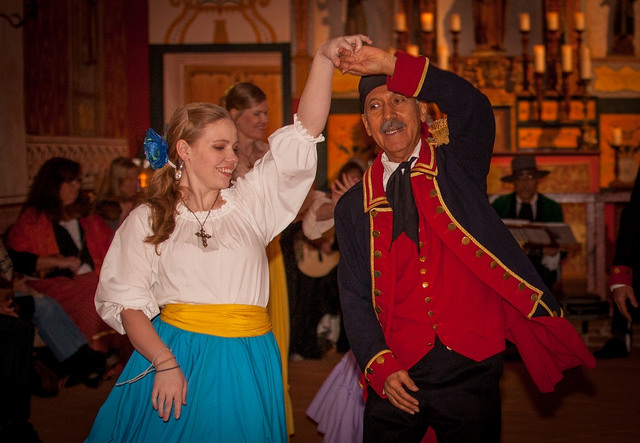 Exciting things are happening for Baile de California in 2015! Company rehearsals for our folk/social dances begins TODAY, Jan. 5th. We are prepping for February’s 1st Thursday event, Presidio Pastimes by Candlelight, Thurs., Feb. 5th, 5-8 pm, at El Presidio de Santa Barbara. This is always a fun event with opportunities to see what Presidio life would have been like at the end of the day over 200 years ago. Photos by Fritz Olenberger.