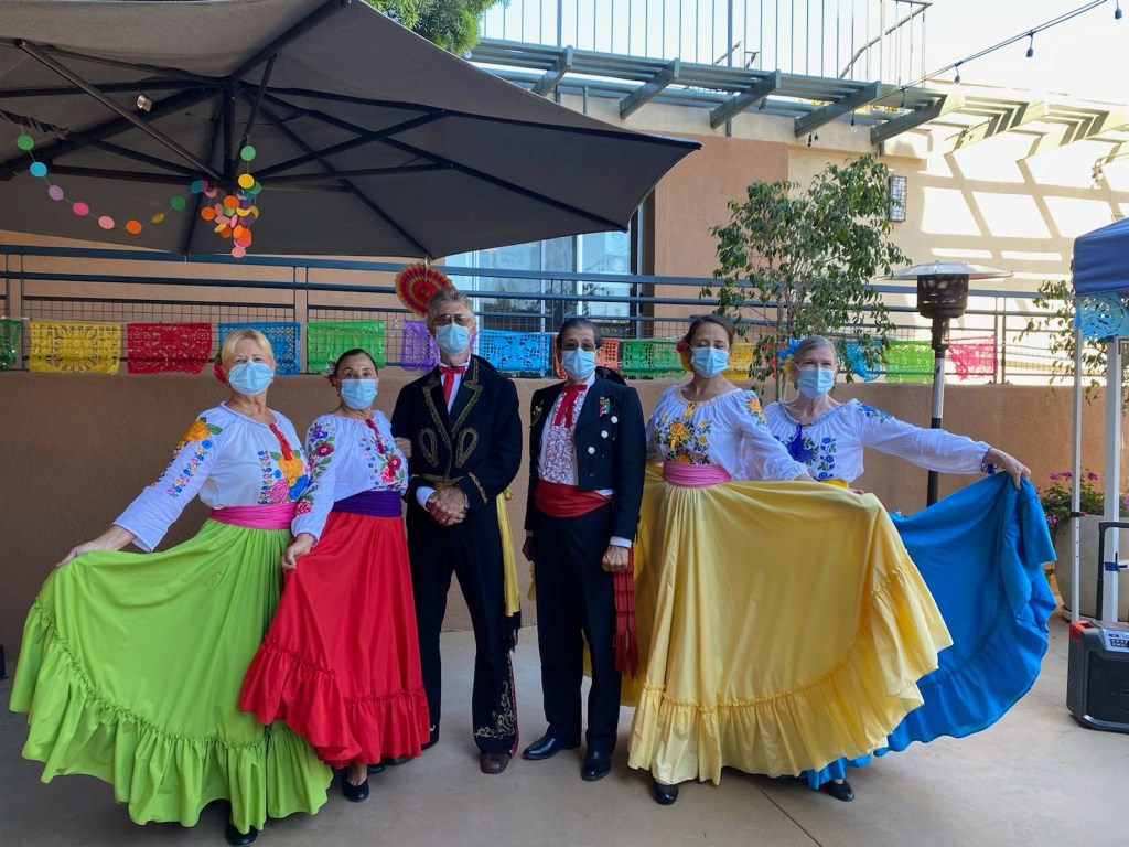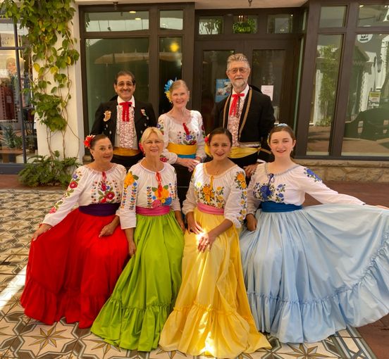 Baile de California started off Fiesta week by guest performing with (see photo above) La Boheme Dance Group at the beautiful and historic Rancho Santa Barbara. We will let you know when the video of the event is available. From there we went onto perform at six senior facilities in Goleta and Santa Barbara. Although this was not the Fiesta we rehearsed and hoped for, it was incredible to bring the Fiesta Spirit to so many seniors who haven’t been able to be out in the public for 17 months. We truly experienced the power and joy of dance! And not to leave out Santa Barbara’s youngest citizens, we danced for First Presbyterian Church’s Early Childhood Center. We had children as young as 14 months watching and swaying to the music. We even performed for their church members after their Fiesta Sunday service at which our good friend, Tony Ybarra played guitar.